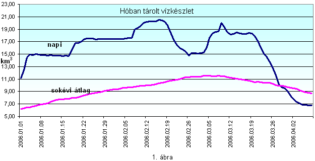A Dunán 2006. márciusának végén áradás indult el, ami az eddigi legnagyobb, észlelt, jégmentes árvízszintet is meghaladta. A Duna vízgyűjtő területén 2006. január 1-jén 11,13 km3 volt a hóban tárolt vízkészlet, ami január első hetében 15 km3-re, majd utolsó dekádjában 17 km3-re növekedett, és a február 7–18-ig terjedő időszakban már 20 km3 feletti volt. Ez a vízkészlet a január–márciusi sokéves átlag kétszerese, időnként háromszorosa volt.