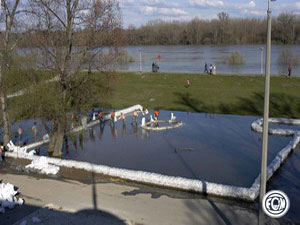 Ahogy 2002-ben, 2006-ban is szorítógátakat kellett kiépítenünk. Ezekben az ellennyomó medencékben buzgárok jelentek meg. Elfogásukat segítette a medencékben állandó magasságon (20-40 cm) tartott vízszint és a helyileg megépített homokzsákos körbezárás.
